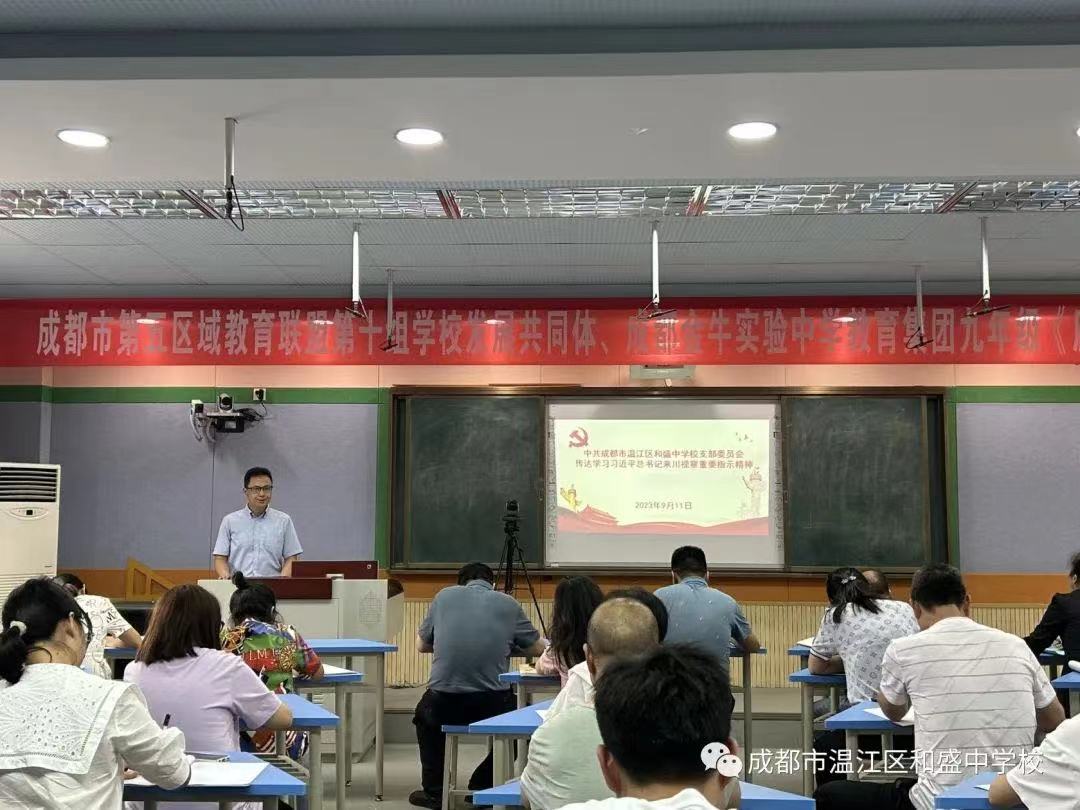 为深入学习宣传贯彻习近平总书记来川视察重要指示精神,切实加强全体教师思想政治建设,2023年9月11日下午,成都市温江区和盛中学校在未来教室开展了“学习贯彻习近平总书记来川视察重要指示精神”专题学习活动,活动由学校党支部专职副书记申太安主持。