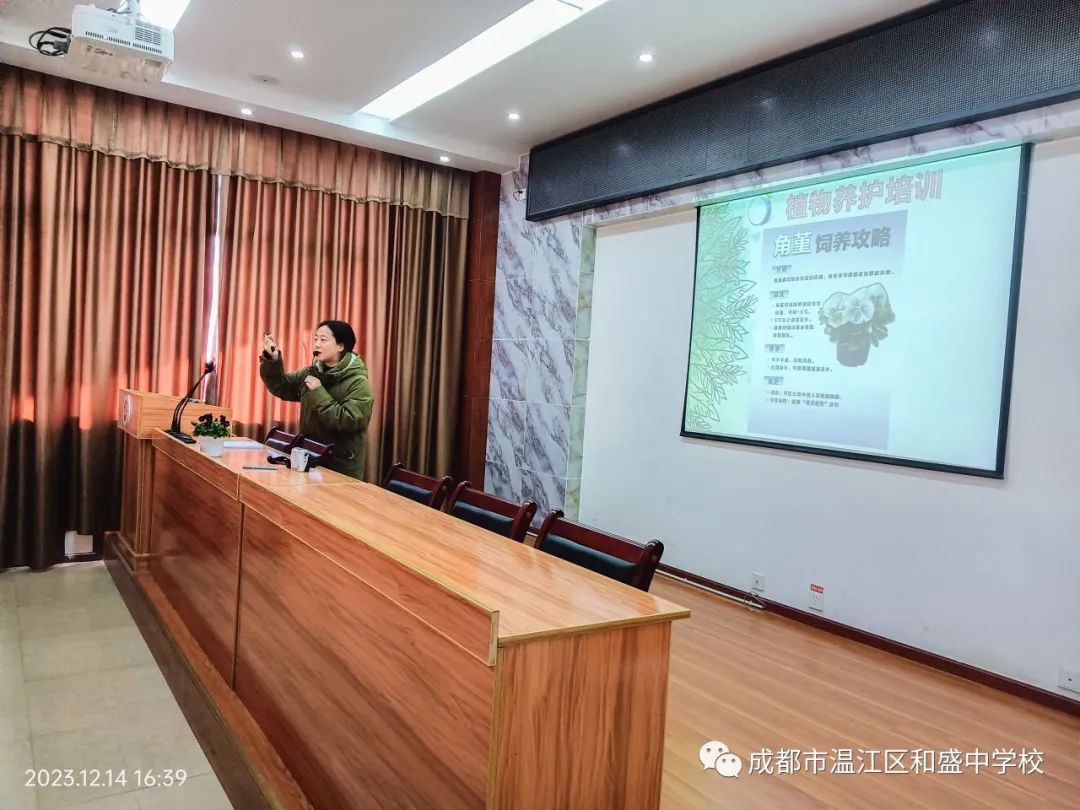 接着,拥有一身养花特长技能的学校美术老师刘思帆给同学们做了精炼的养护角堇花卉的培训,同学们认真听取。