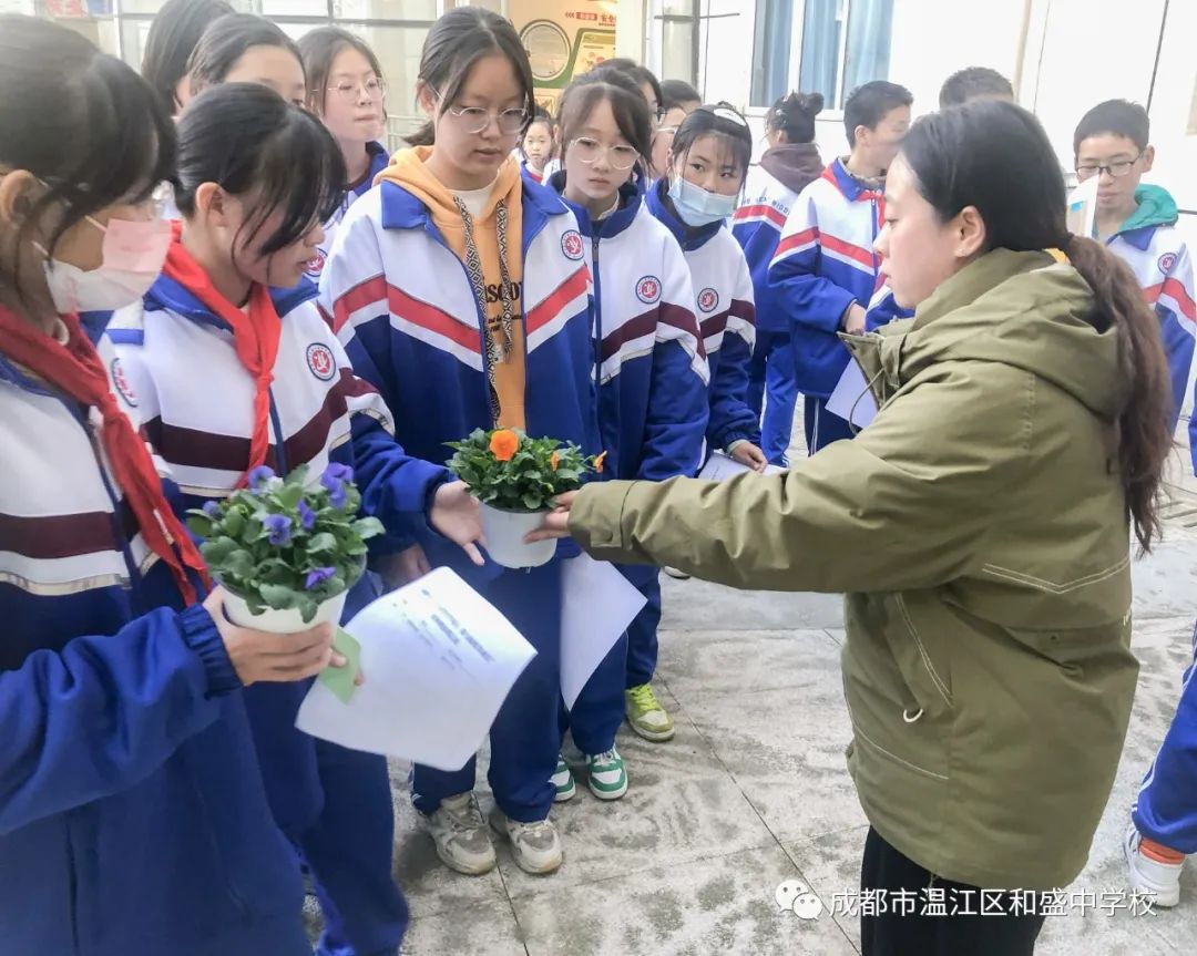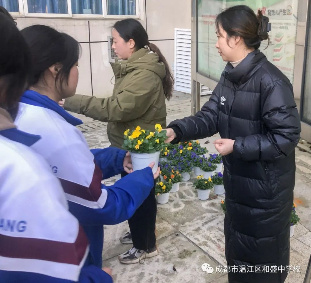 12月14日下午,和盛中学7、8、9年级部分同学和各班心理委员一起参加了“播种幸福”小花苗领养活动。同学们通过自主领养植物——角堇花苗,领养成功后需悉心培育并记录植物一个月的生长过程。同学们领养植物过程中,不可半途而废或糟蹋丢弃;每周需要填写《植物观察周记表》,记录下花苗的养育过程也可用绘画的方式记录下来,我们最后将遵循“过程大于结果”的原则进行评定,评选出“最佳领养员”。