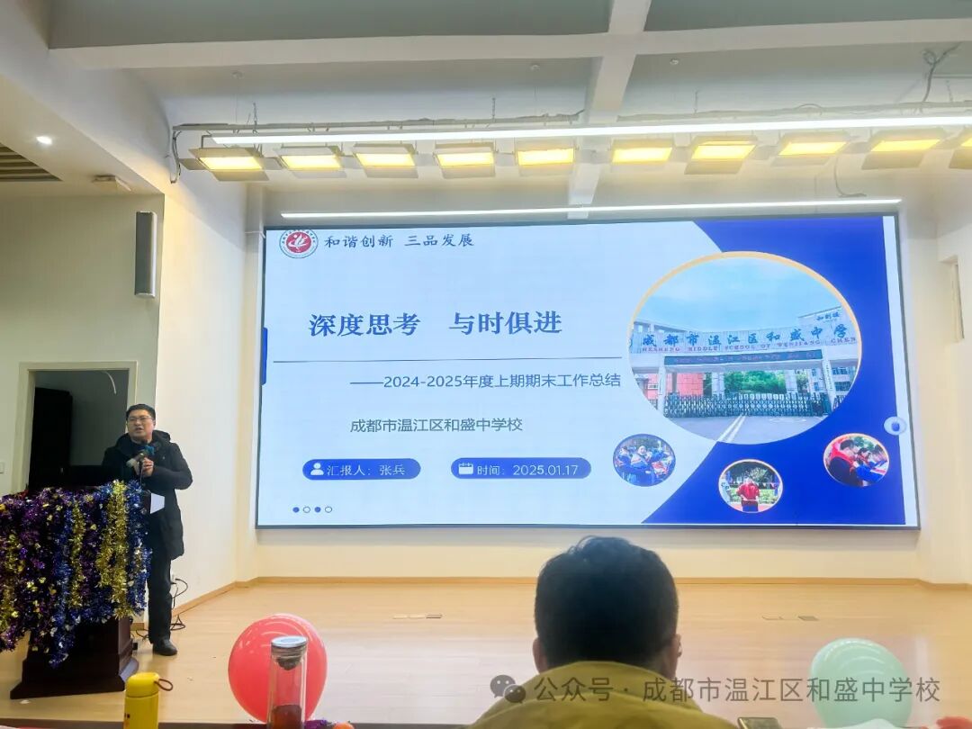 又一年硕果盈枝,又一年葳蕤春华。时间总是带着美丽行走,转眼间又到了期末回眸总结的时候。2025年1月17日上午,成都市温江区和盛中学校全体教职工欢聚一堂,共同回顾过去一年的辛勤与收获,展望新一年的希望与梦想。