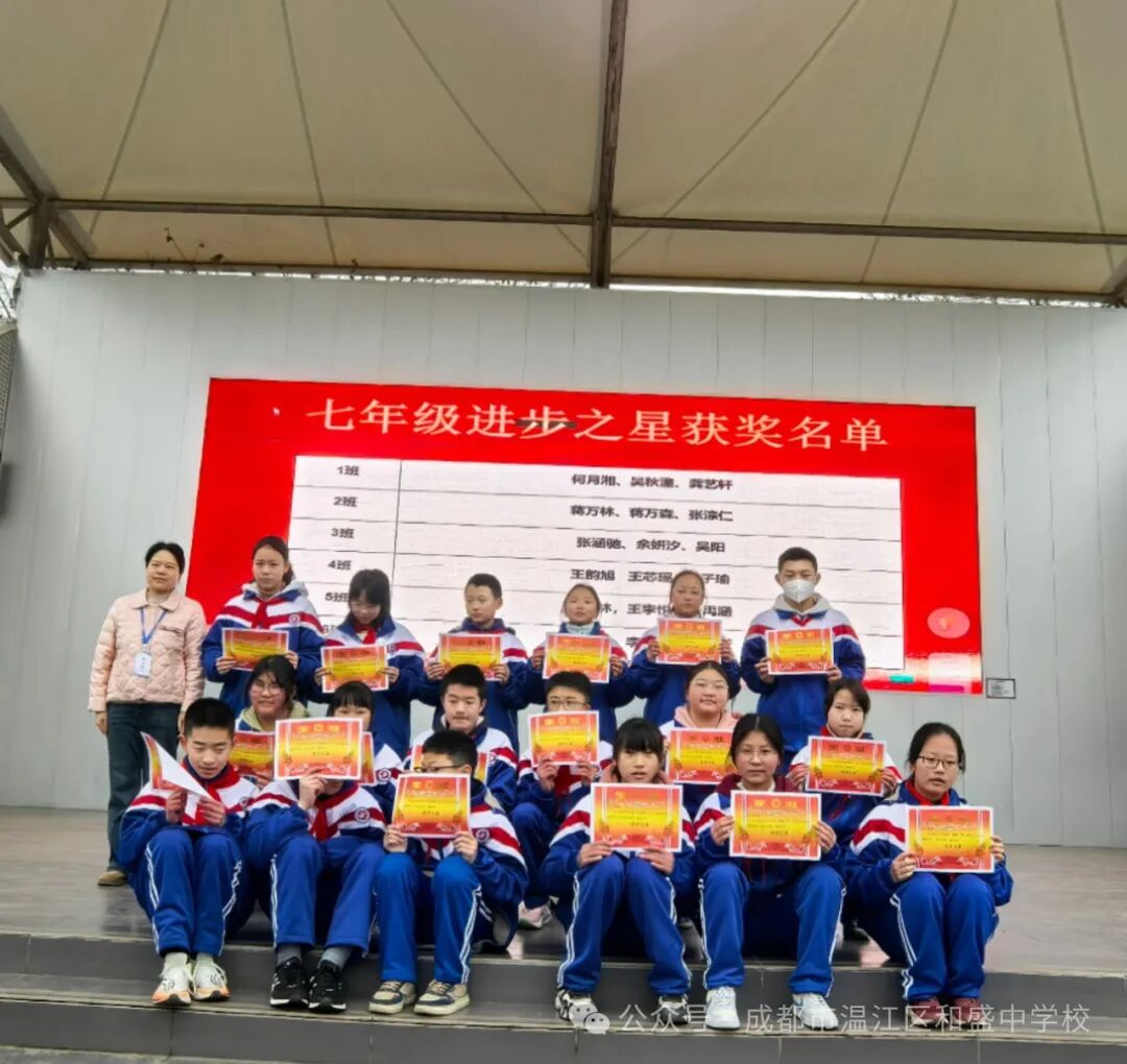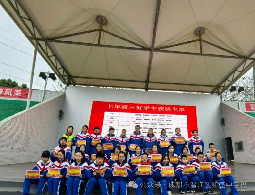春华秋实满庭芳,砥砺耕耘结硕果。为表彰先进、总结过往、规划未来,激励学生以积极姿态迎接新挑战,成都市温江区和盛中学校于3月17日上午召开七年级期初学生表彰大会。