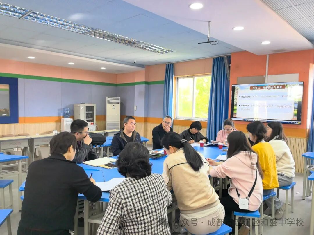在温江区第三期“优师天府”教师共享计划暨2025年春季“城市共享课堂”的统筹与安排下,2025年4月8日,成都市共享教师——成都市青羊区语文教研员陈鹏老师来到和盛中学,开展了第一次共享工作。和盛中学校长张兵、副校长廖志鹏,学校中层干部及全体语文教师全程参与了此次学习活动。