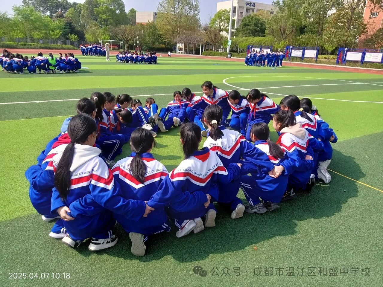 "一花独放不是春",4月7日心理教师陈红以"花开花落"团体游戏破冰,200名七年级学生在无声协作中绽放信任之花。