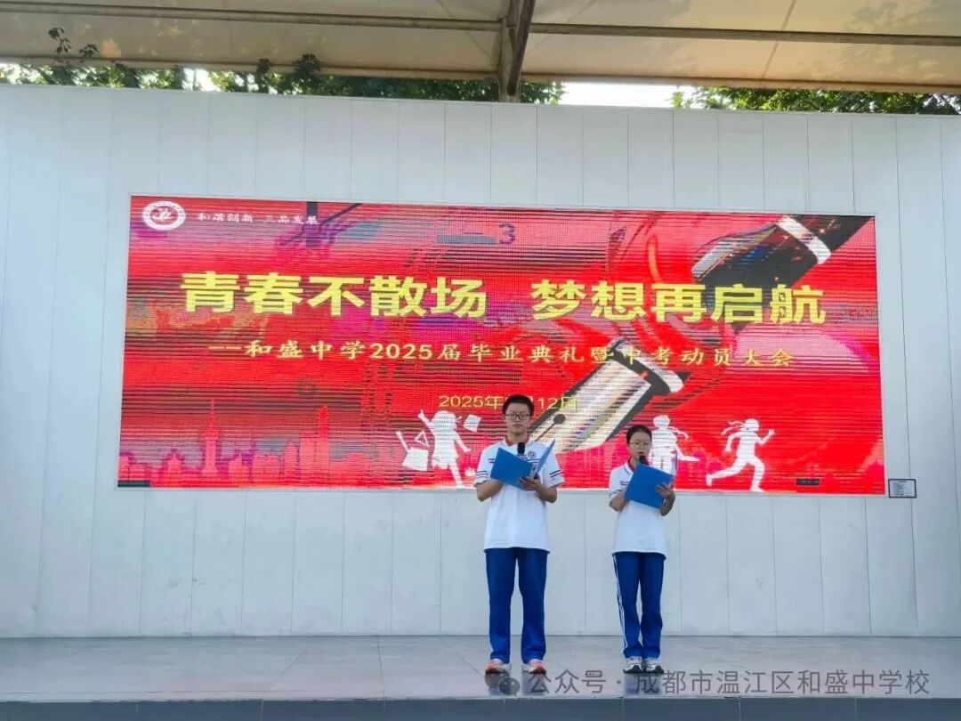 和盛中学校长张兵登台致辞,为初三学子带来了实用的迎考技巧:“科学复习,查漏补缺,确保基础扎实;同时注意劳逸结合,保持最佳状态。”同时张校长也为大家送来了满满的祝福,语气温暖而坚定:“三年来,你们用努力证明了自己。无论结果如何,母校永远以你们为荣。愿你们自信迎考,前程似锦!”