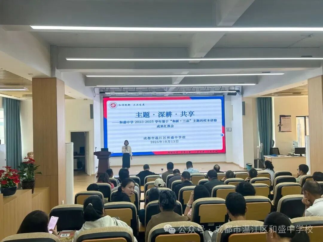 金秋送爽,丹桂飘香。为系统总结与展示近两年来的校本研修成果,2025年10月13日,成都市温江区和盛中学校隆重举行了以“主题·深耕·共享”为主题的学年校本研修成果汇报会。会议由学校课程与教师发展中心副主任陈延清主持,全体教师齐聚一堂,共飨这场教育教学的思想盛宴。
