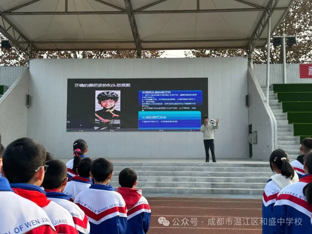 2025年12月1日,和盛中学迎来了一场别开生面的知识讲座。依托成都市共享平台,我们邀请到四川省自行车协会的郑雨林教练为同学们带来了一堂生动实用的“自行车基础知识”课程,让同学们在轻松愉快的氛围中收获了骑行知识与技能。